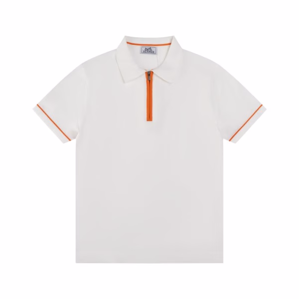 HERMÈS Unisex Retro-Inspired Mesh Knitted Polo Shirt (White)