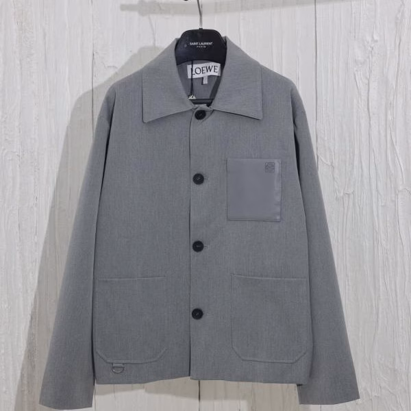 LOEWE 2024 New Three-Pocket Wool Utility Lapel Jacket Coat