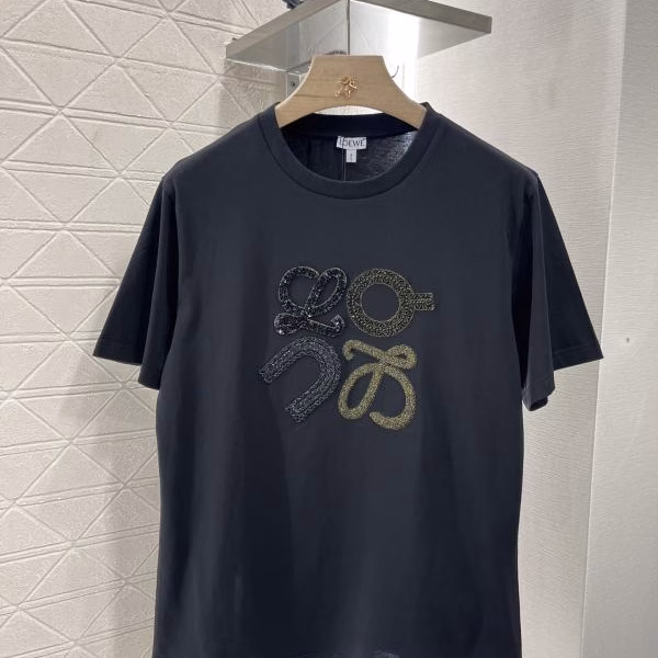 Loewe 2025 New Embroidered Beaded Gold Powder T-Shirt
