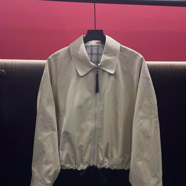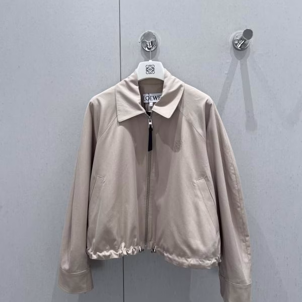 Loewe 2025 Early Spring New Style Lapel Zip Short Drawstring Jacket Coat