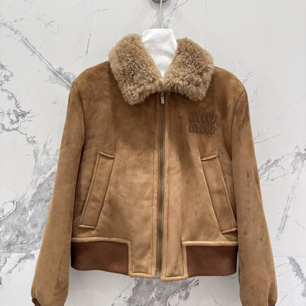 Miu Miu High-end Suede Imported Fur and Leather Short Jacket Coat