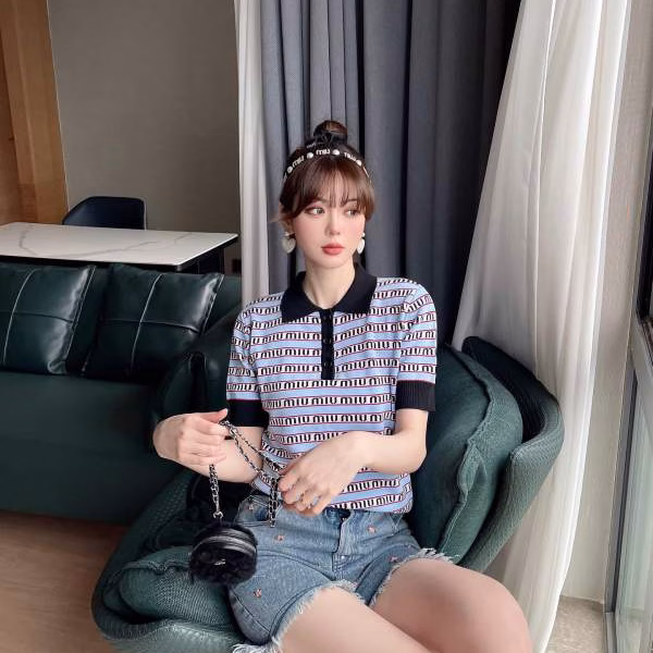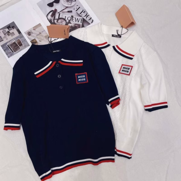 MIU MIU Early Spring New Letter Embroidery Polo Short Sweatshirt