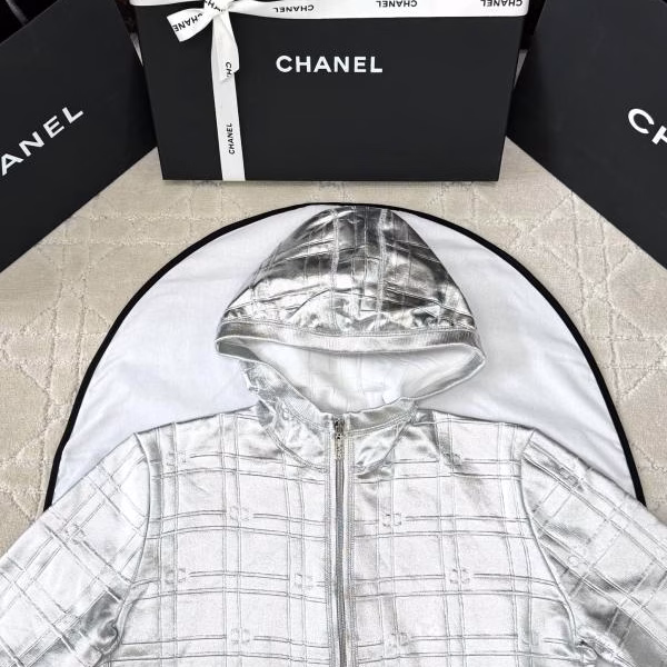 Chanel 2025 Early Spring Silver Embossed Double C Pure Cotton Jacket