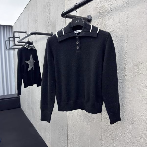 DIOR Embroidered Lily of the Valley Collar Knitted Short-Sleeve Polo Shirt