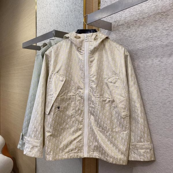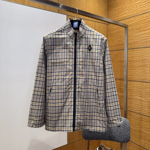 DIOR Checkered Stand-Collar Embroidered Long-Sleeve Coat