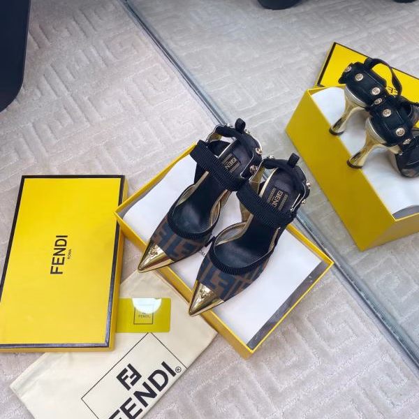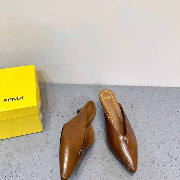 Fendi 2024 New Double F Gold Buckle Cutout Stiletto Heeled Mules