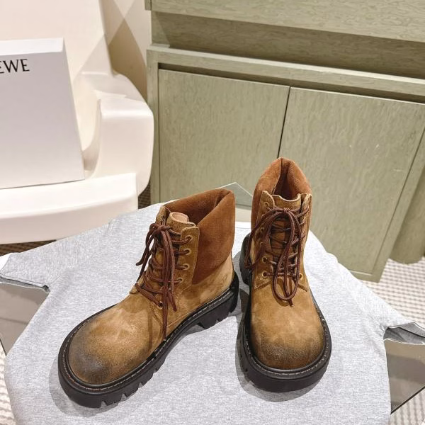 LOEWE Celebrity-Inspired Round-Toe Lace-Up Ankle Boots