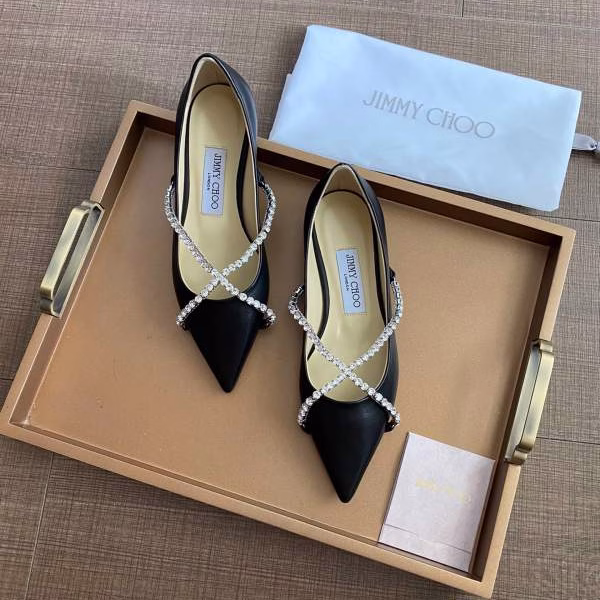 Original Stock Jimmy Choo Full-Grain Crystal Sheepskin Flat Shoes