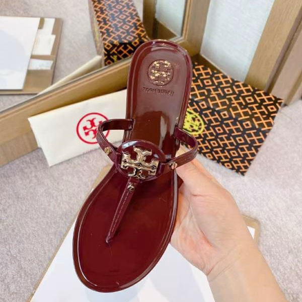 Tory Burch Patent Leather Collection Classic Fashion Flat Toe-Post Sandals