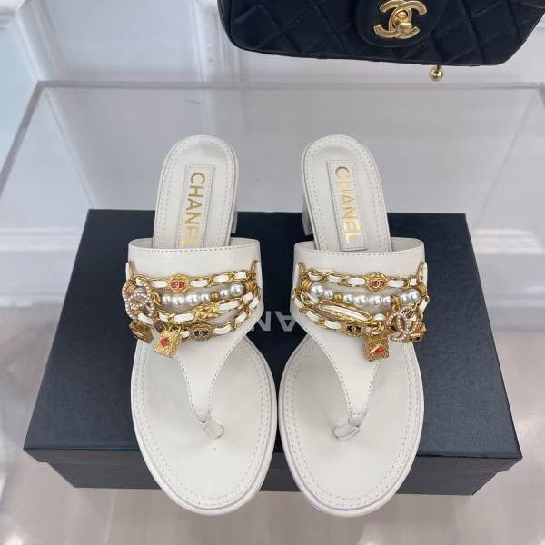 Chanel 2022 Pendant Pearl Chain Flip-Flop Sandals