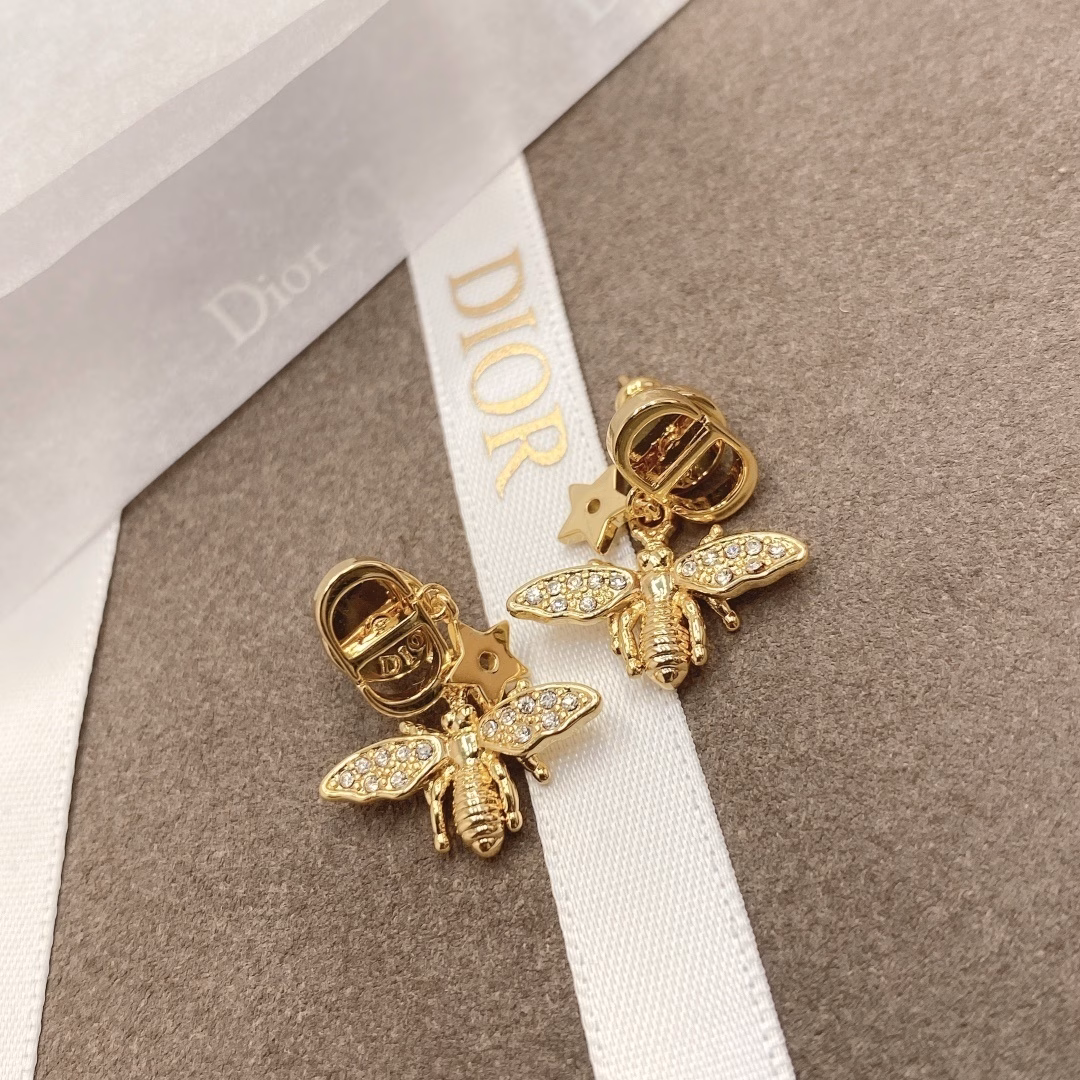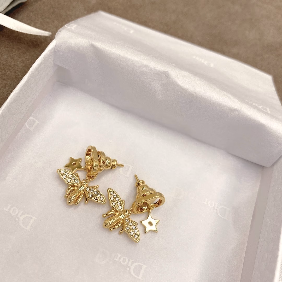 Lifelike full-diamond bee pendant front and back wearable earrings. This Petit CD earring is classic and elegant, creating a dazzling style on the runway.