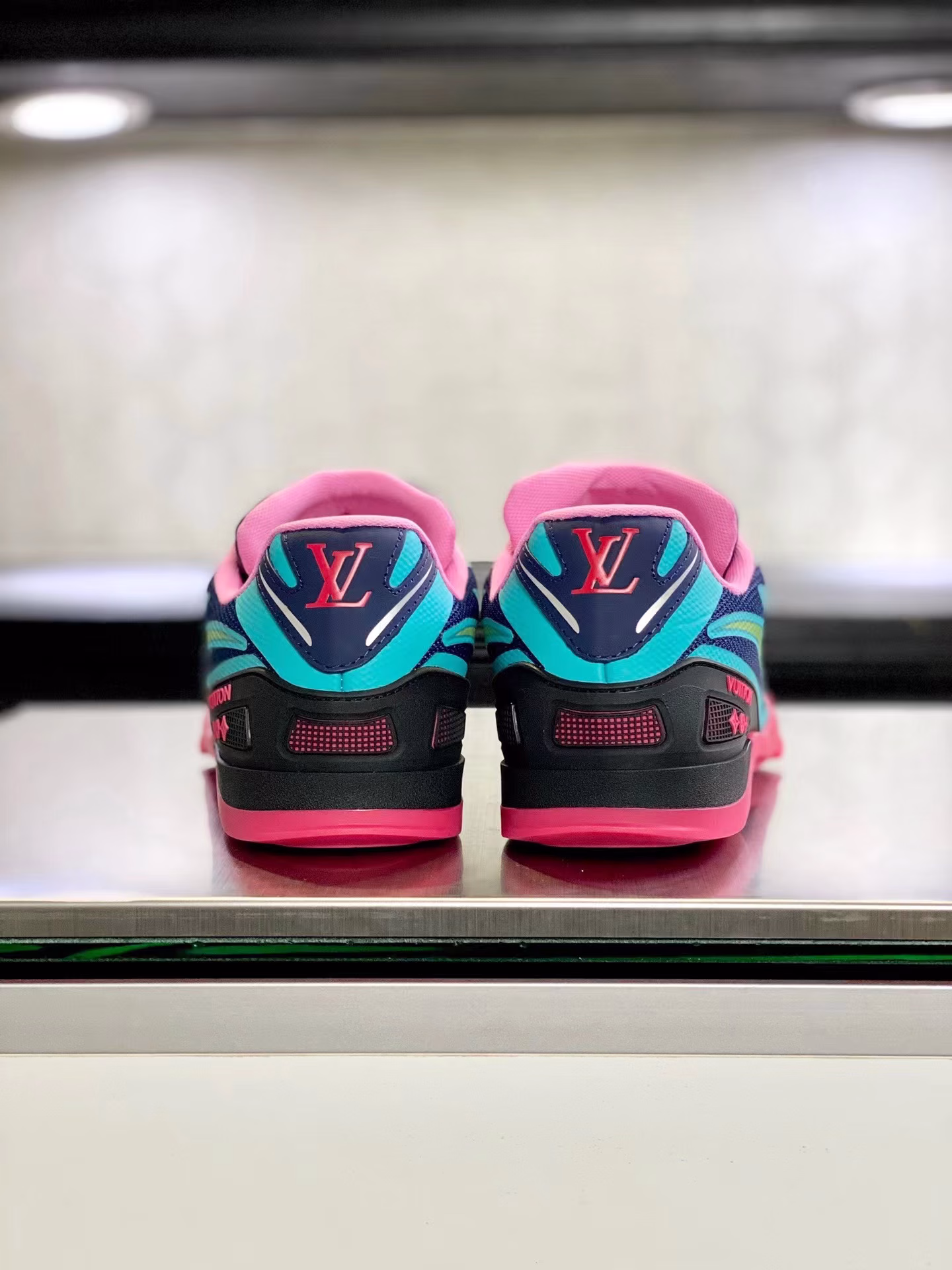 Crafted from lightweight technical fabrics, they feature an abstract interpretation of the Monogram flower pattern. Complemented by the streamlined design of football shoes, the brand’s letters and Monogram flowers adorn the rubber outsole and tread respectively.