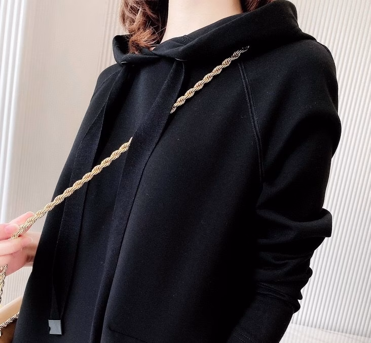 New Arrivals in British Style – 2022 Spring and Winter New High-end Light Luxury Youthful Casual Loose and Slim Fit Oversized Pullover Space Cotton Sweatshirt Dress. One piece handles your outfit, simple and refreshing~ The colors are pure~ The version hides flesh, cool and casual, suitable for everyone~ Pair it with a pair of white shoes, it’s so youthful and age-reducing. High-quality space cotton, colors: black/red, sizes: S M L XL XXL. Size S: bust 104cm, dress length 98cm.