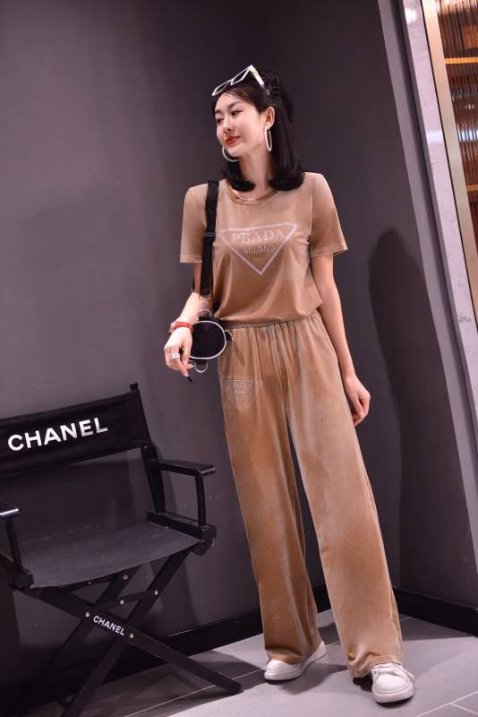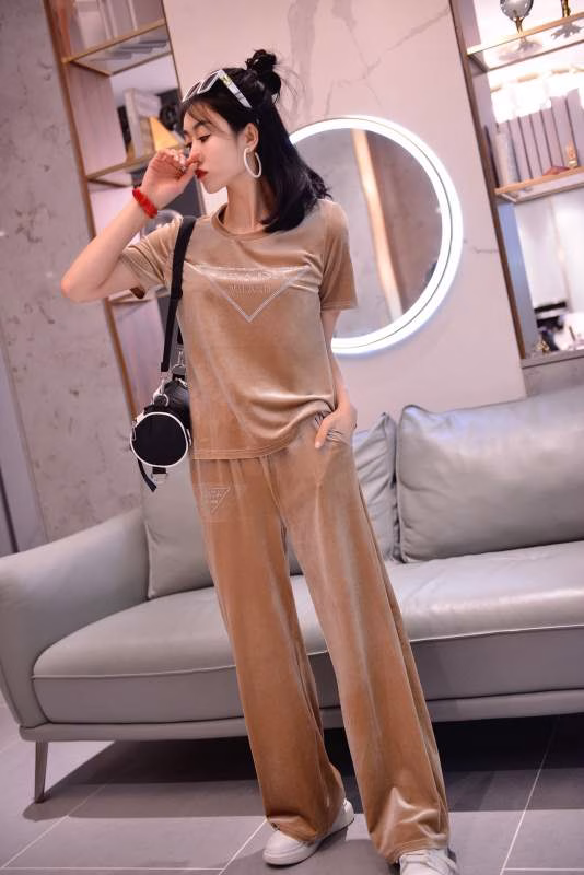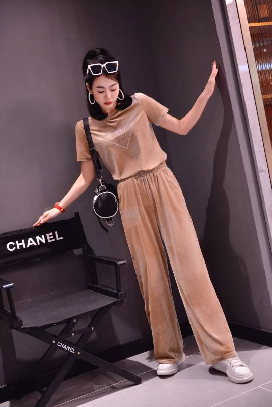 2022 Spring/Summer European-style New PRADA Rhinestone-Embellished Velvet Top + Velvet Rhinestone-Embellished Wide-Leg Pants Set
