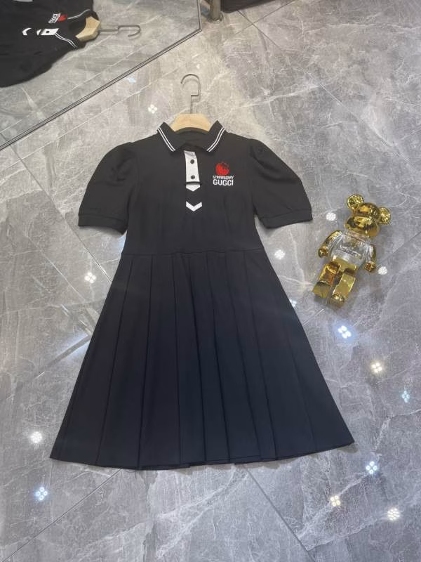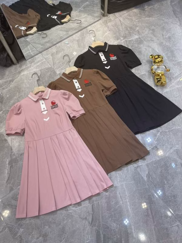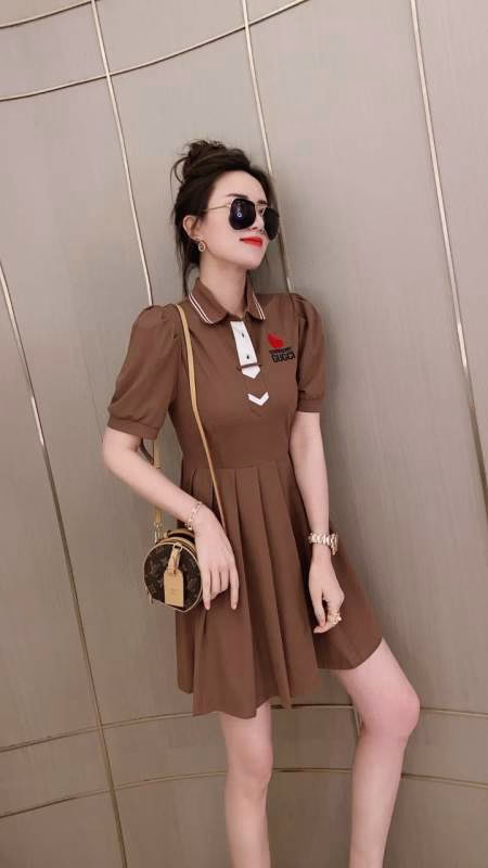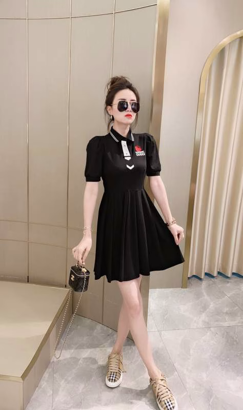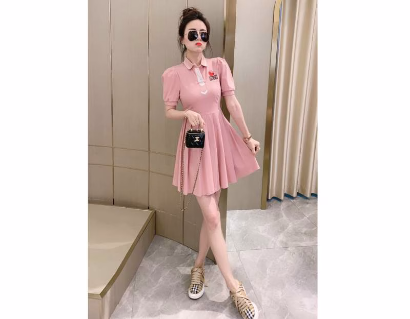 New arrival – 2022 Spring/Summer new G-family heavy-embroidery Polo-collar pleated puff-sleeve fitted waist dress.