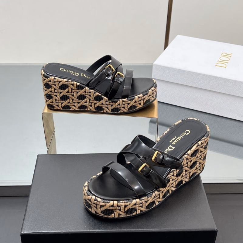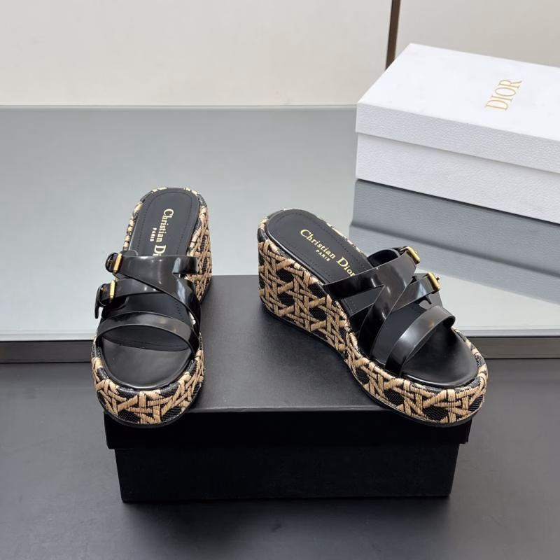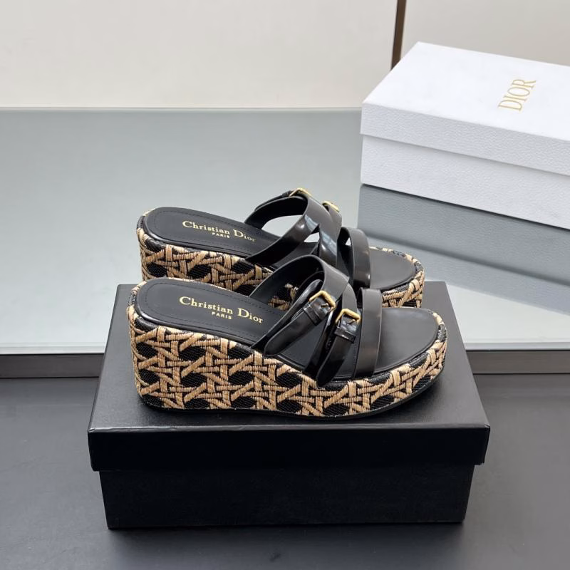 2025 Spring/Summer New Dior D-Attitude Wedge Sandals – Cross-Strap Platform Sandals