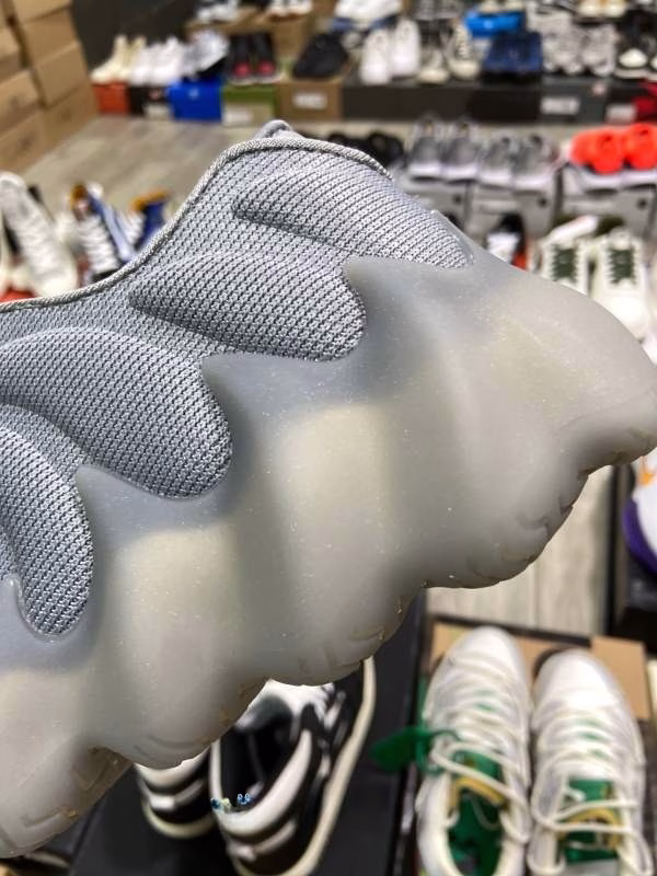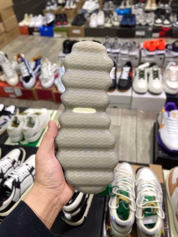 Adidas Yeezy 450 Cloud White “Xiao Long Bao” – Kanye West’s Yeezy, same style as Justin Bieber’s knit sock sneakers. This series features an exaggerated serrated midsole design, and its unique upturned structure perfectly fits the nickname given to it by various sneaker enthusiasts. The midsole does not seem to adopt cushioning technologies like Boost, yet the foot feel remains extremely comfortable, making it currently the most unique Yeezy model.