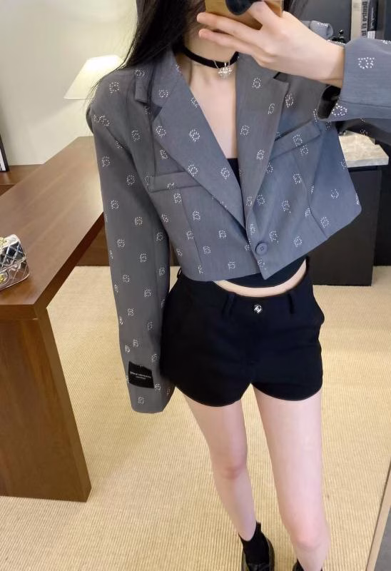 Design: This short suit jacket features an exclusive design by Alexander Wang, focusing on fit and comfort. It has an excellent wearing effect, showcasing a modern and fashionable temperament. With a label on the sleeve, the exquisite full-diamond design makes it more eye-catching. The overall design is simple and elegant, suitable for various occasions, and highly fashionable, which is bound to become an indispensable item in the wardrobe.