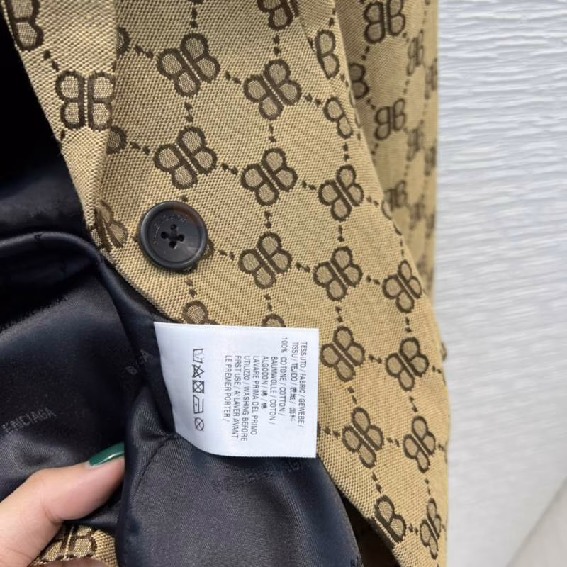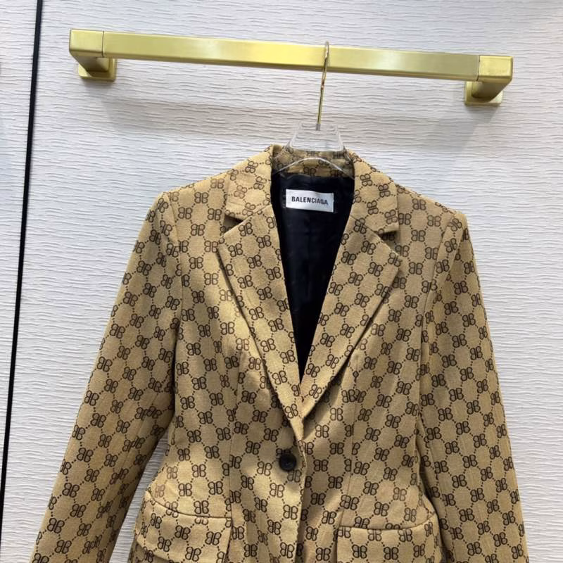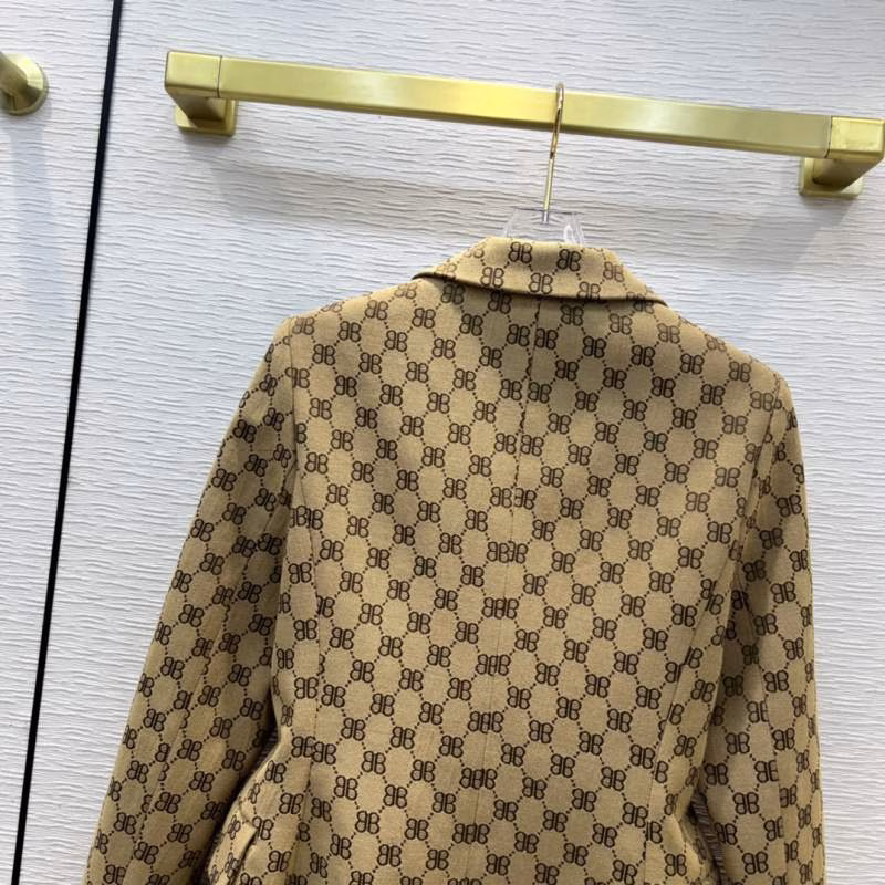 New launch! Balenciaga 2022 Resort Collection new logo double B jacquard hourglass waist blazer – a high-street fashion essential that’s absolutely show-stopping! Boasting 3D three-dimensional tailoring for a perfect fit, it radiates a retro and premium vibe. A must-have for fashion icons, this piece brings out full presence and charisma. It looks sharp and sleek on, totally amazing! With customized bullet screen printed lining, the exquisite craftsmanship shines through in every detail. Available in two colors, sizes S to L. In-stock now, grab yours quickly! Size S: shoulder width 38cm, bust 86cm, waist 76cm, length 68cm.