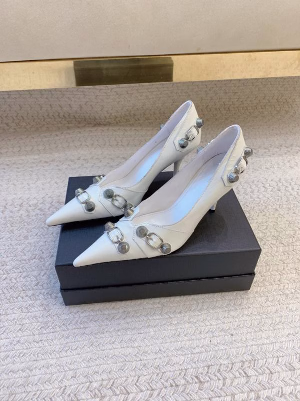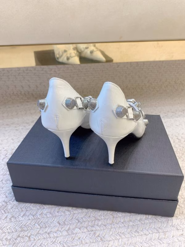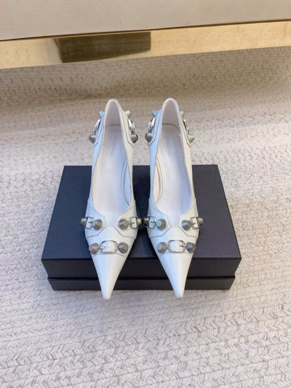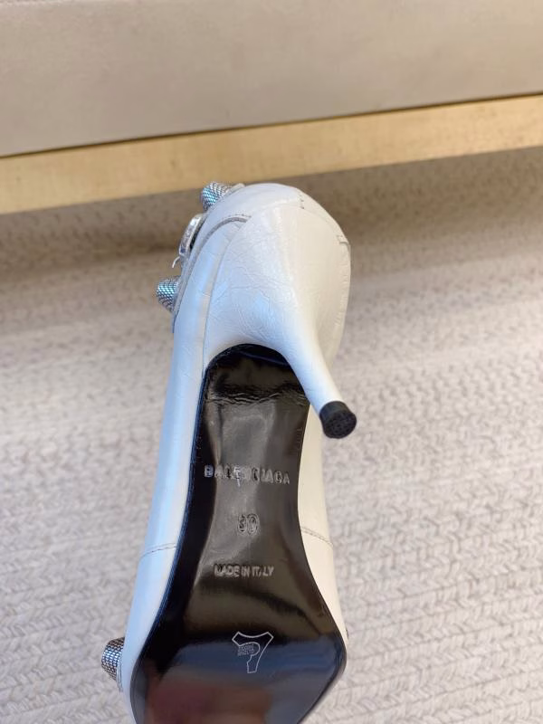 Balenciaga reinvents the classic high heel with a sharp pointed toe and edgy studded design, exuding avant-garde spirit and a sophisticated high-end vibe. The refined tailoring contours the foot to create an elongated silhouette, while the sleek stiletto heel features smooth lines—blending elegance with modern boldness, effortlessly complementing office attire, party looks, or street-style outfits.