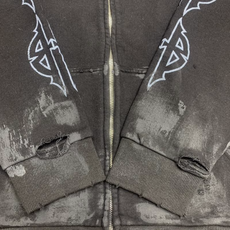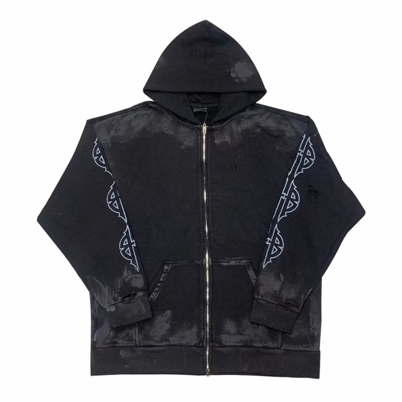 Balenciaga Eiffel Tower Paris Night Distressed, Dirty, Ripped, Washed Hooded Zip-Up Jacket Sweatshirt
