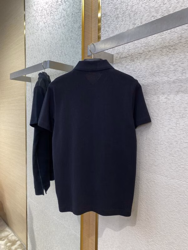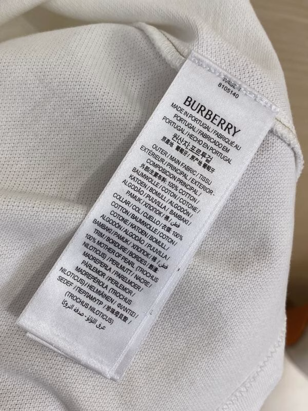 This BBR Burberry Polo shirt is made of custom cotton pique mesh fabric, which feels soft and comfortable, has good breathability, and is perfectly suitable for daily wear or sports. The tone-on-tone shield logo (EKD) embroidered on the chest adds the brand’s unique classic elements, highlighting taste and a sense of fashion. The placket is equipped with exquisite mother-of-pearl buttons, and together with the extended rear hem, the overall design has a stronger sense of layering and detailed beauty.