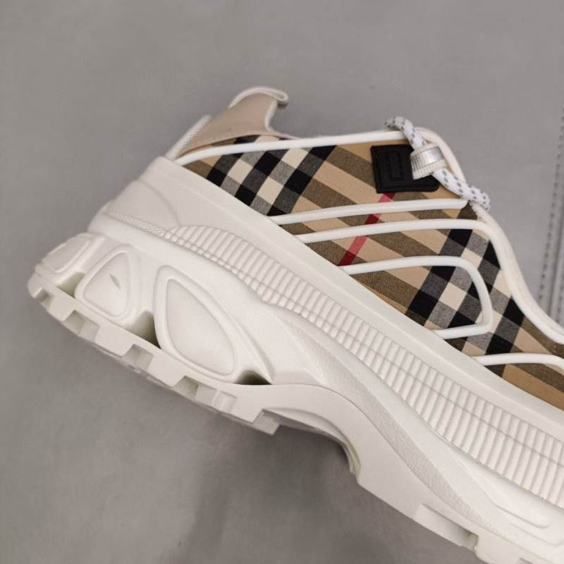 Burberry casual shoes – Burberry B’s original high-quality products, the Union sports shoes from the fashion show collection. They feature a combination of multiple materials, appearances and textures. Crafted from suede, vintage check cotton fabric and nylon panels, they adopt a thick layered sole design, exuding a dynamic sporty style. Adorned with the brand’s exclusive logo patterns and a refreshed emblem.