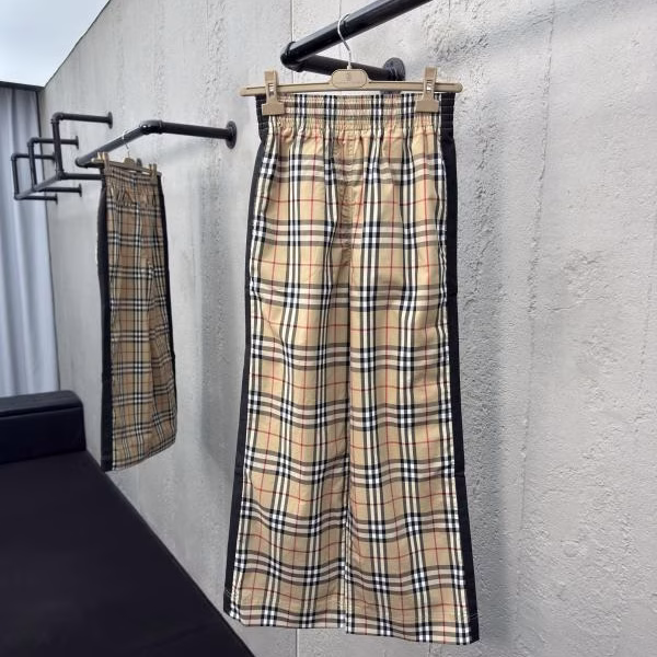 This pair of Burberry checkered black-striped stretch cotton trousers features a classic Vintage checkered design, paired with black satin fabric panels on the side. The clever tailoring and splicing make the overall look both simple and full of fashion sense. The trouser legs can be rolled up or let down according to personal preference, both of which can show different styles, presenting elegance and personality.