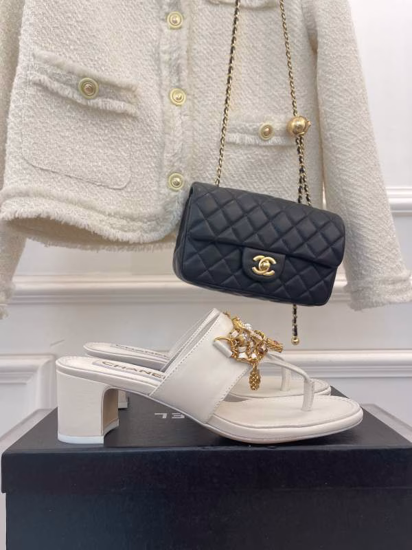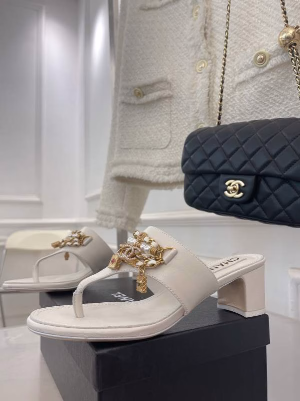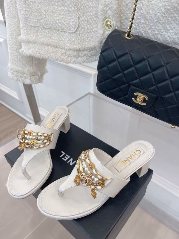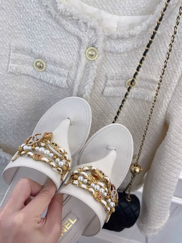 Chanel 2022 Pendant Pearl Chain Flip-Flop Sandals
