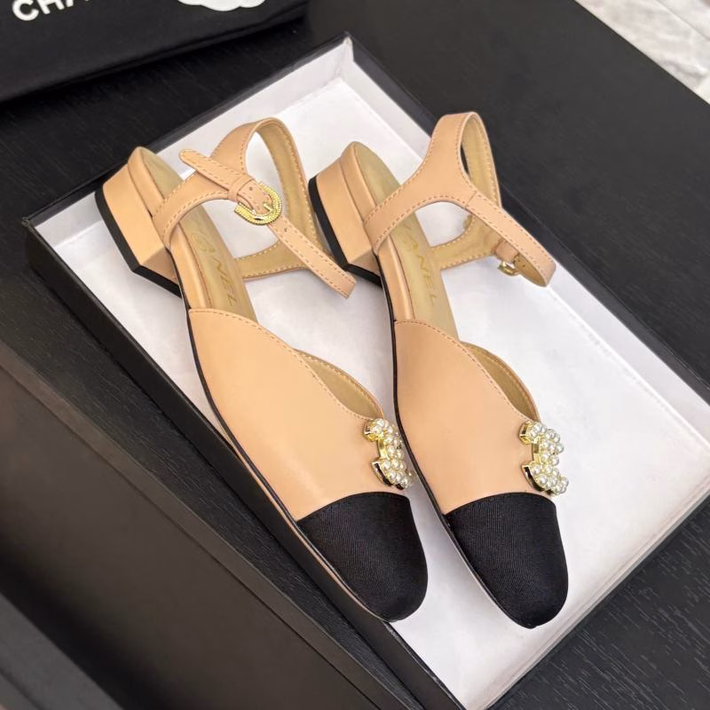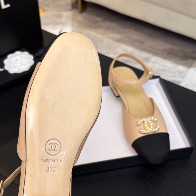 The heel is designed with pearls, showcasing Chanel’s unique elegance while enhancing wearing comfort and stability through the block-heel structure. It adds a youthful touch to the shoe, leaving a lasting impression at first glance.