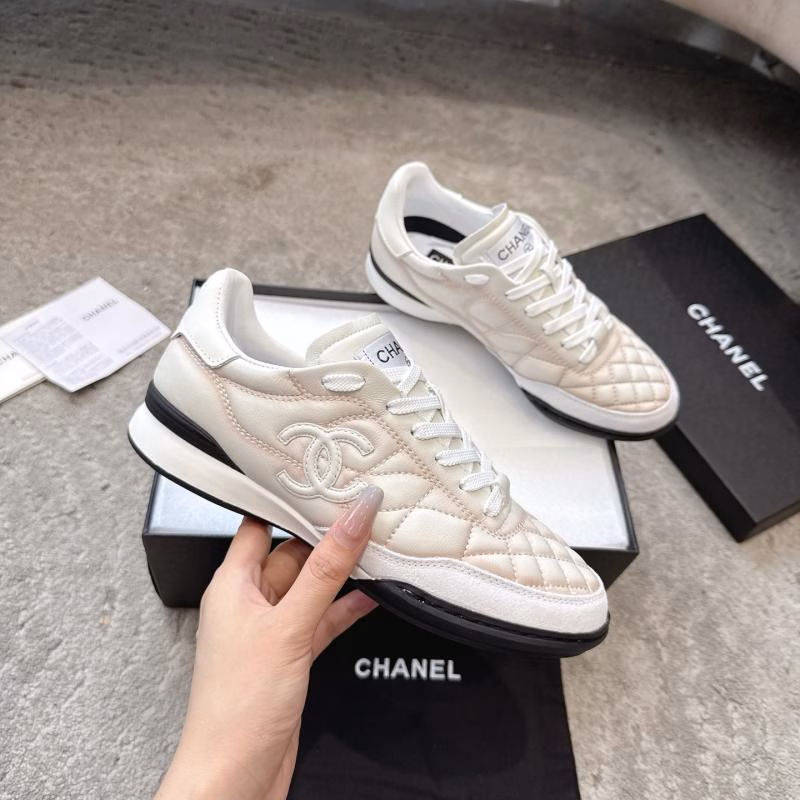 CHANEL Fall/Winter 2025B Black & White Panda Colorway Lambskin Quilted Tennis Shoes
