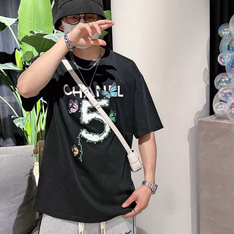Chanel retro washed and vintage-effect classic “5” couple T-shirts (suitable for live streaming). Made of 16-count double-single fabric with a weight of about 230 grams, it has an excellent hand feel. Unisex style. Color: as shown in the picture. Sizes: XS, S, M, L, XA1.