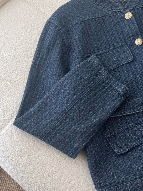 This Chanel denim jacket combines retro charm with modern tailoring. It is understated yet highly atmospheric, perfect for women who pursue high fashion and a quality lifestyle.