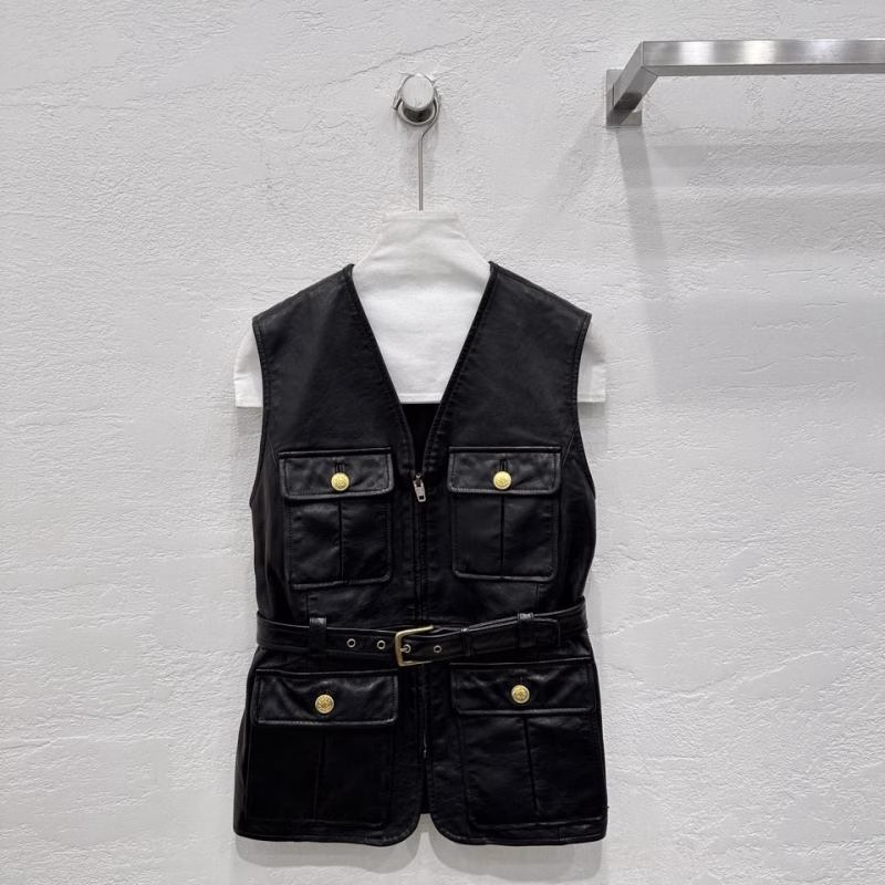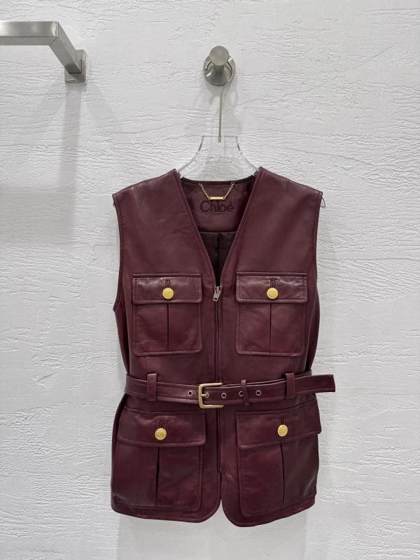 Product Title: Chloé 2025 Early Autumn Retro Leather Vest Coat
