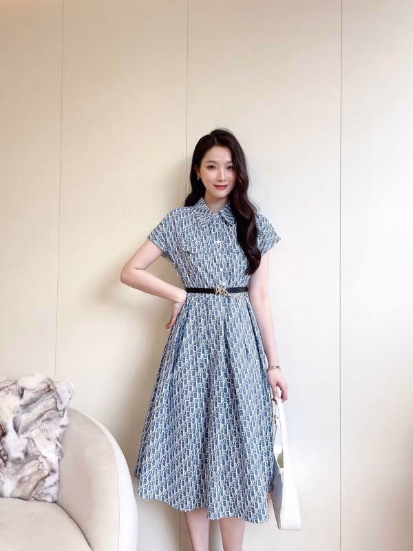 2022 Spring/Summer New Gucci Embroidered Polo-Collar Puff-Sleeve Fitted Waist Dress