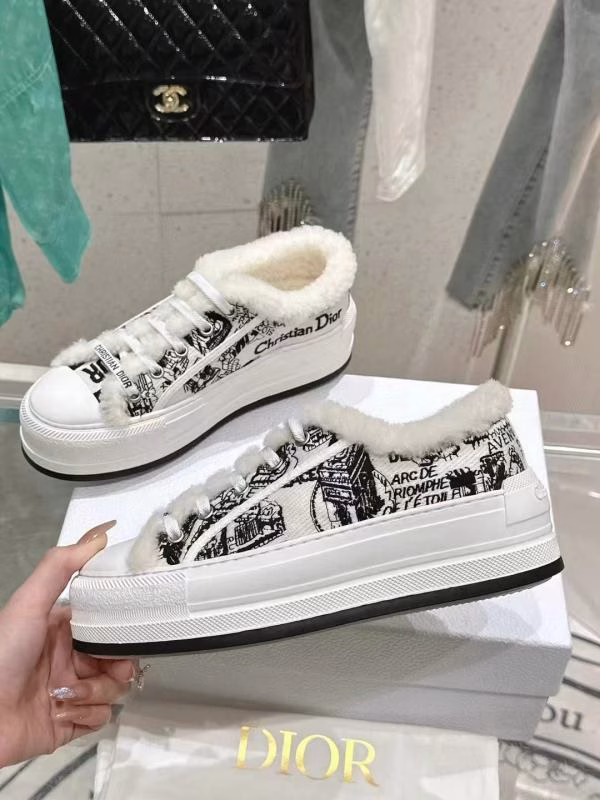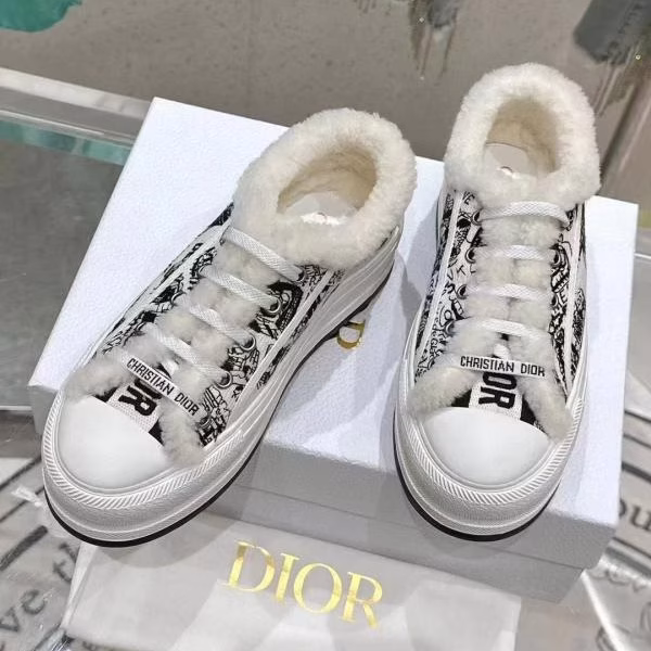 Dior Embroidered Platform Fleece-Lined Casual Shoes