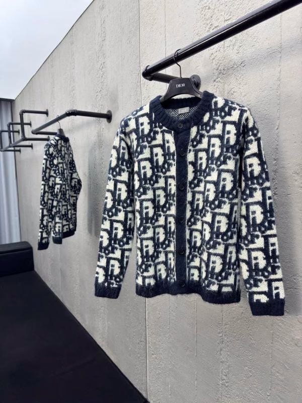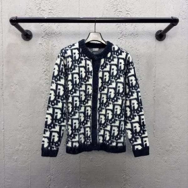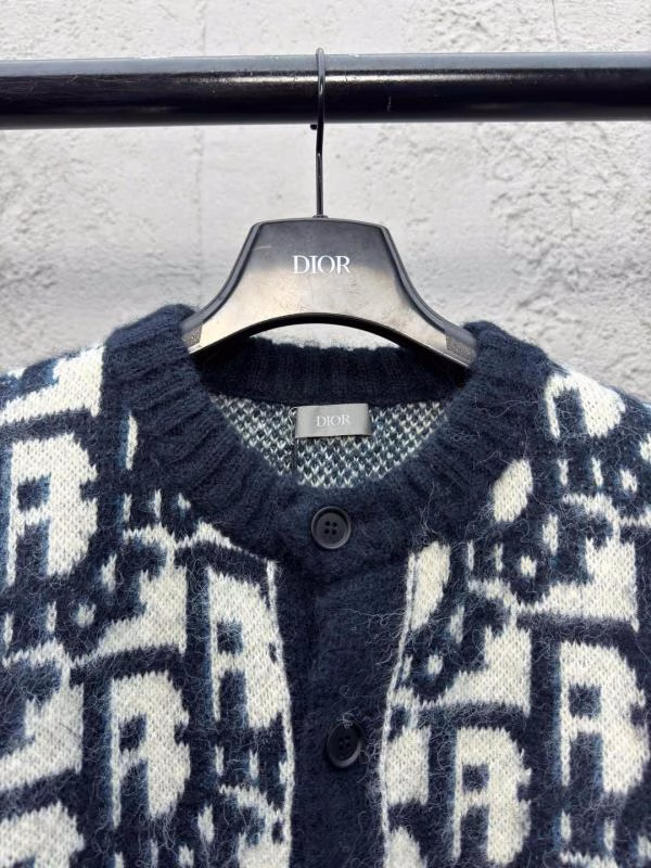 This DIOR Jacquard Knit Mohair Cardigan is made of blue mohair blend knit fabric, combined with a classic silhouette and Oblique print, presenting an exquisite visual effect. The fabric is soft and comfortable, with delicate stitching and consistent color. It can be matched with items of the same style, showing both fashion and elegance. Suitable for wearing on different occasions, it demonstrates the unique charm of the brand.