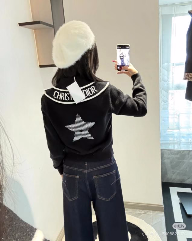The five-point star decoration on the back and the curved letter crochet pattern on the back collar add unique visual focal points. It is both fashionable and retains the brand’s classic elements, perfectly embodying DIOR’s delicacy and luxury.