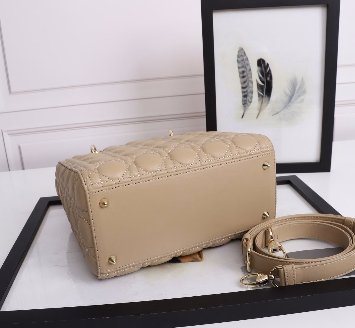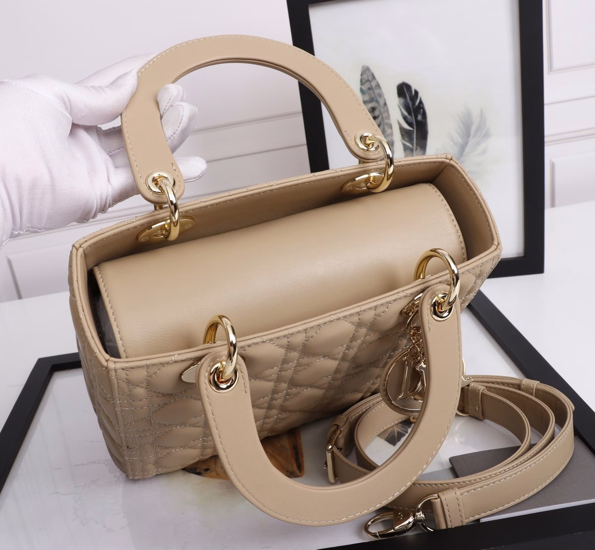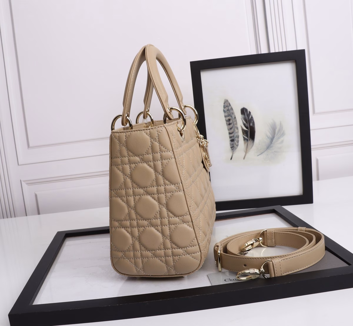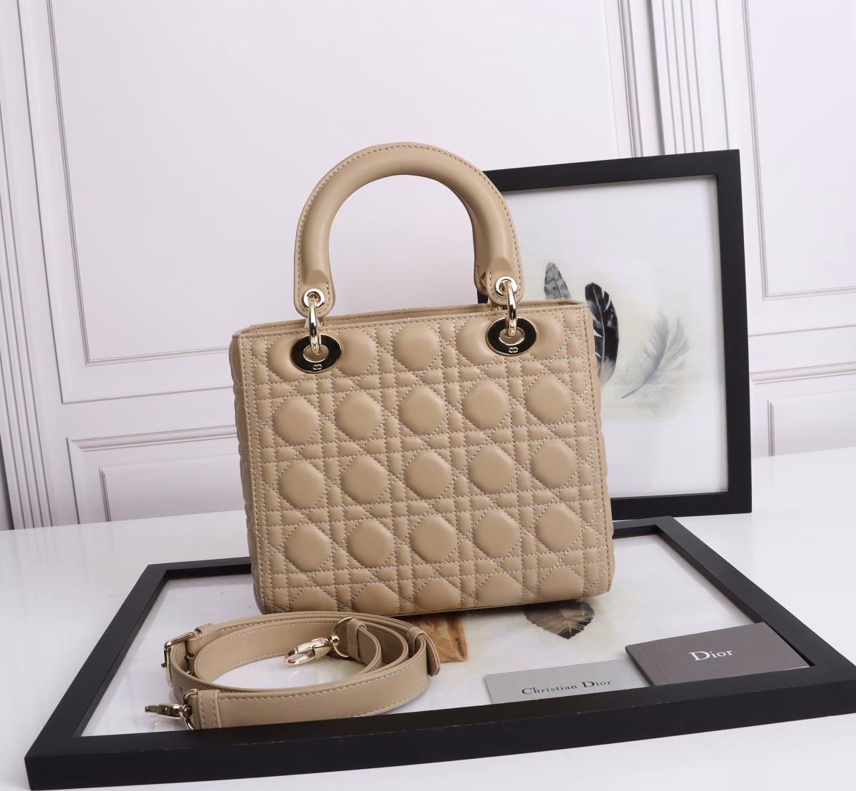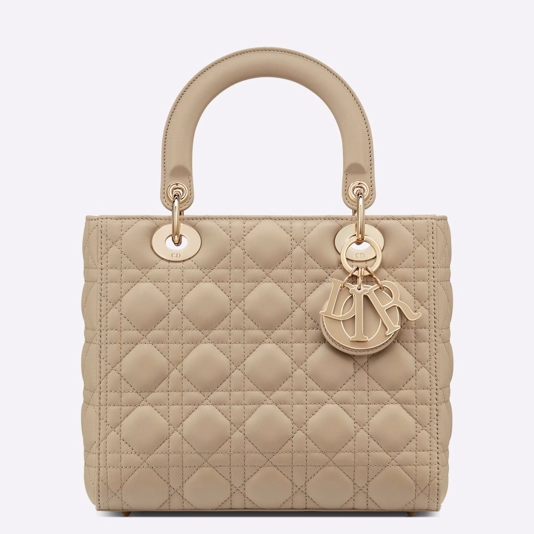 Dior Medium Lady Dior Bag with Enamel Charm In Beige Lambskin