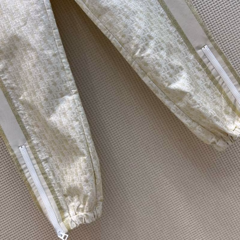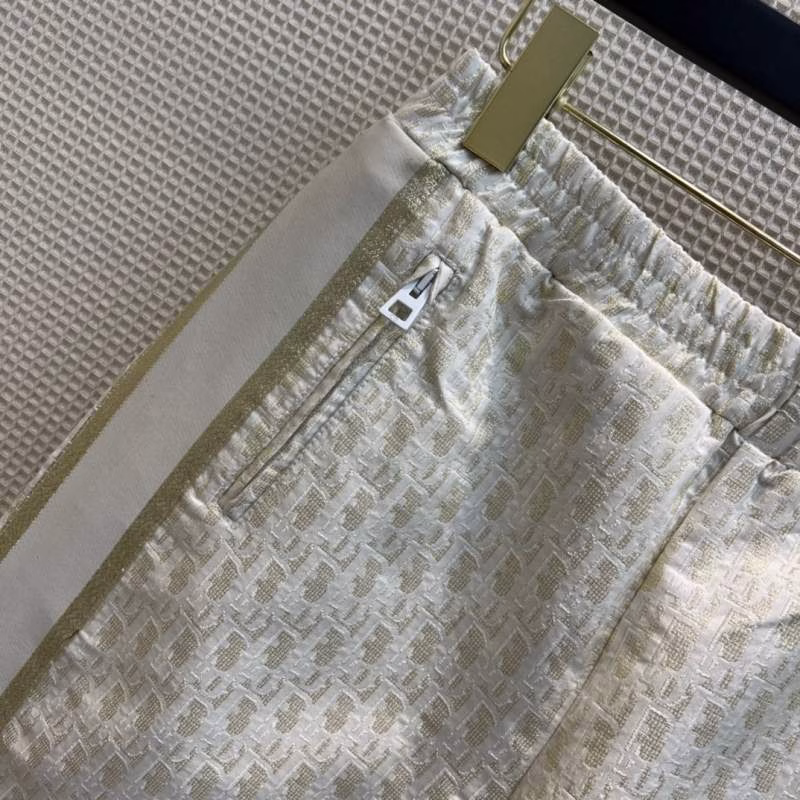 Dior 2022 Spring/Summer CD Limited Edition Gold Custom-Woven Taffeta Trousers, available in sizes S, M, L. Featuring CD monogram jacquard with original quality, these trousers belong to Christian Dio* 2022 Spring/Summer Lucky Gold Collection. Made from original customer-supplied fabrics with imported gold-thread logos, they are exceptionally structured and well-shaped. Crafted in a 1:1 ratio following the original version, unlike low-end market versions that simplify craftsmanship to cut costs. The full set includes custom zippers and accessories matching the original, with lucky gold embroidery and side logo embellishments, plus zippers at the cuffs. Offering multiple ways to wear, there’s simply no reason not to love them – they are classic and versatile, available in a single color.