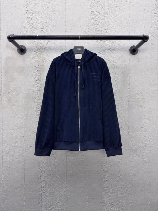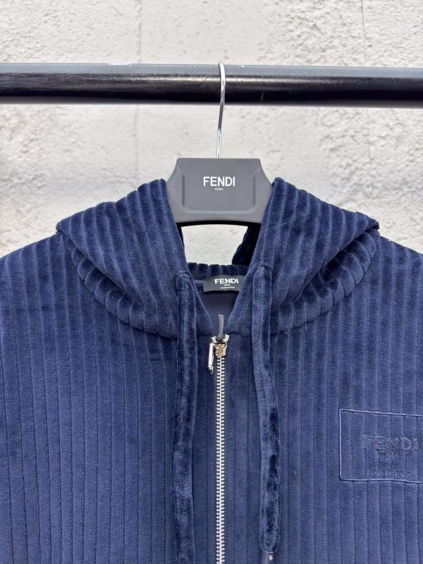This FENDI jacket is made of 100% cotton corduroy fabric, with clear vertical stripes on the surface, a soft touch and a strong three-dimensional sense, bringing a comfortable wearing experience. The specially customized metal cylindrical cord ends with LOGO enhance the drape of the drawstring, making the detail design more exquisite. The waist side is decorated with Fendi letter LOGO elastic inserts, making the overall design unique and full of modern sense.