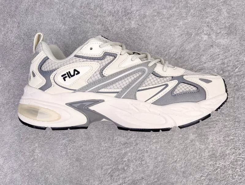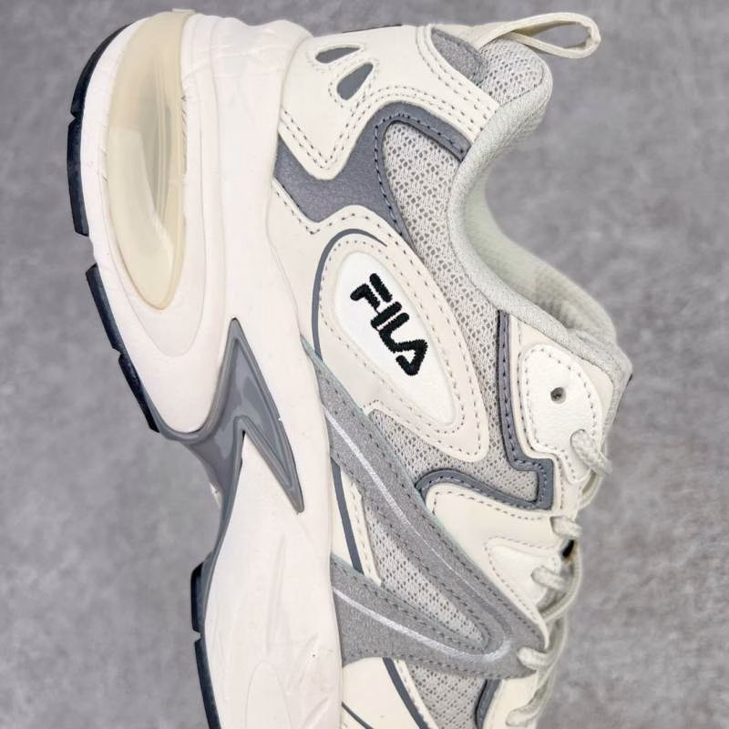 Fila Interation – Fila Dolphin Series dad-style heightening retro unisex casual sports running shoes. They adopt fiber leather breathable material, with independent foamed EVA midsole + wear-resistant rubber outsole, presenting pure retro charm and Italian sports aesthetics.
