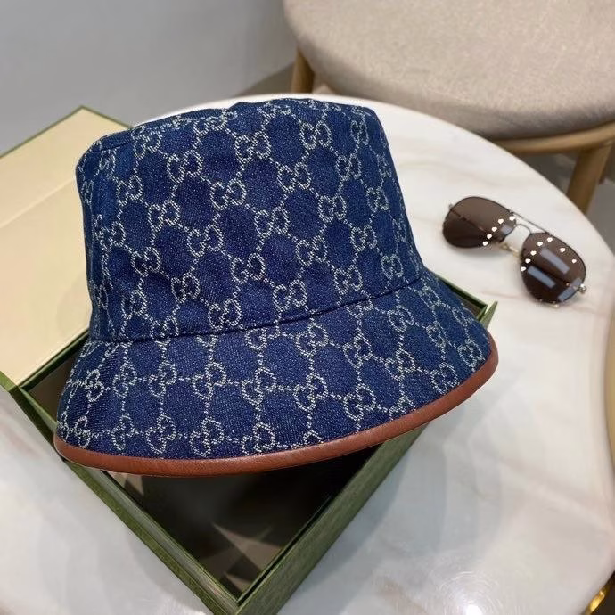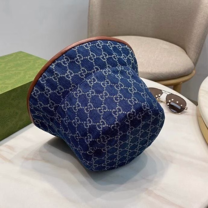 This Gucci denim bucket hat is an upgraded version of the 2021 hit style, produced according to high-standard delivery criteria. The hat body is made of carefully selected denim fabric, paired with unique jacquard craftsmanship, showcasing a retro and trendy style. The overall design is suitable for both men and women, brimming with a sense of fashion. The ubiquitous Gucci logo details fully highlight the brand’s high-end texture. The hat is equipped with the original factory label inside, with exquisite workmanship, and its quality is comparable to the authentic product. Wearing it, whether on the street or in daily life, you can become a trendy focus with extremely high turnaround rate.