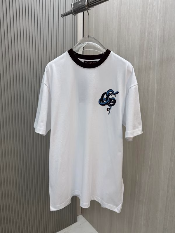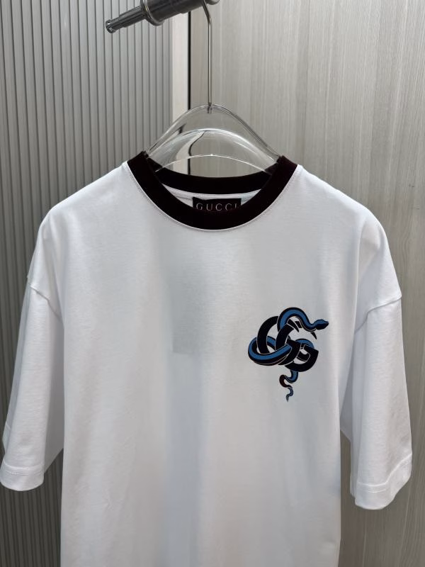 Gucci 2025 Red Collar Double G Snake Print Crew Neck T-Shirt