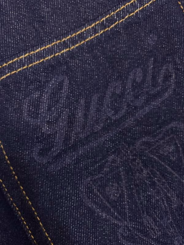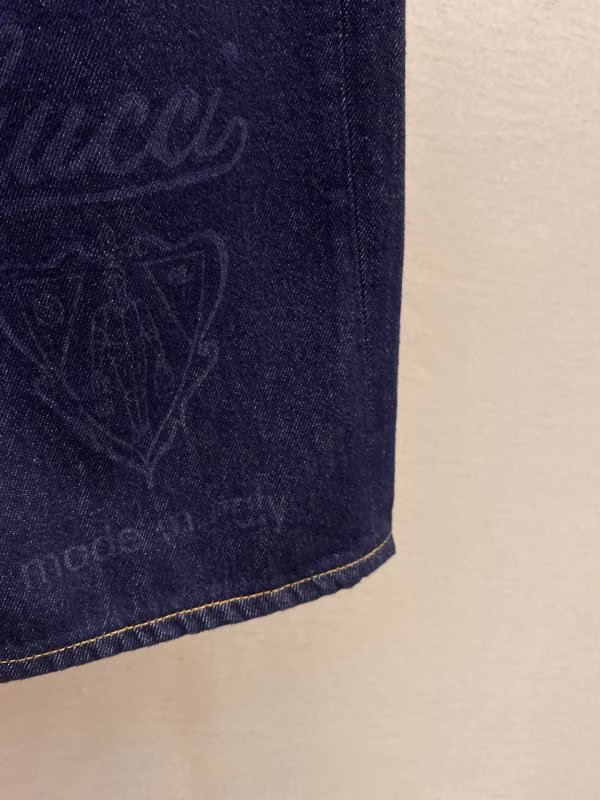 This pair of jeans from Gucci’s 2025 Spring/Summer collection carries forward the brand’s consistent high-end tailoring and practical style. Crafted from comfortable fabric, it features a well-proportioned straight-leg design that visually slims and elongates the body, perfectly shaping the leg lines. No matter what body type you have, you can present a neat look when wearing it. The overall style is simple and understated, with exquisite detailing, and it is versatile and suitable for all, making it a practical must-have in spring and summer wardrobes.