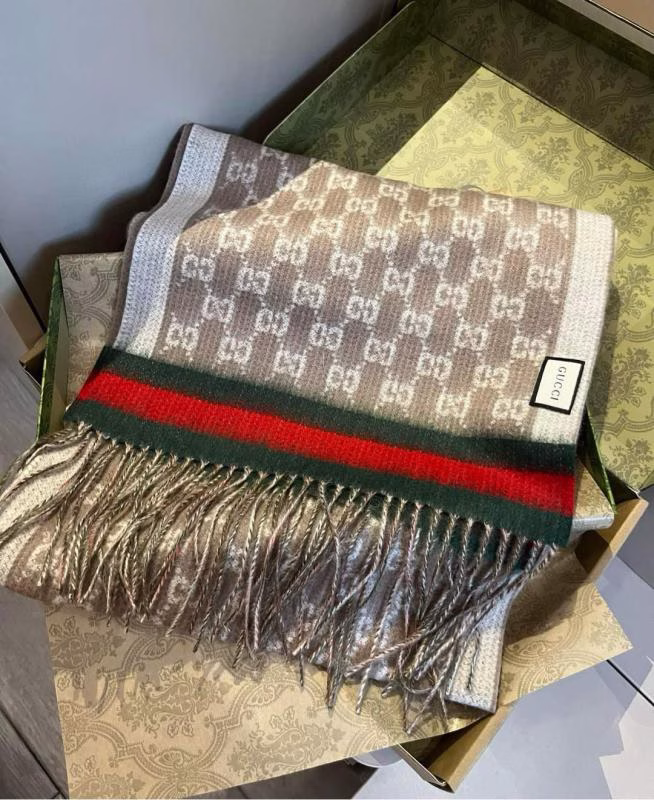 Classic Design: Features a stylish Double G jacquard pattern that embodies understated luxury, showcasing Gucci’s unique brand charm. One side of the scarf is accented with the classic red-green web stripe, adding a sporty vibe and contemporary fashion sense. Its versatile design complements various outfits.