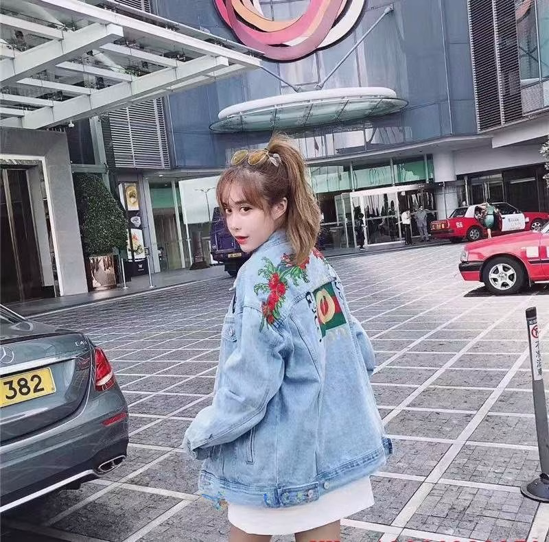 High-quality Gucci denim jacket with Japanese embroidery and a bear embroidery print on the back, same style as Lu Han and Peng Yuyan. It looks extremely cool and stylish, making it a must-have item for going out. The current weather is just right for wearing it.