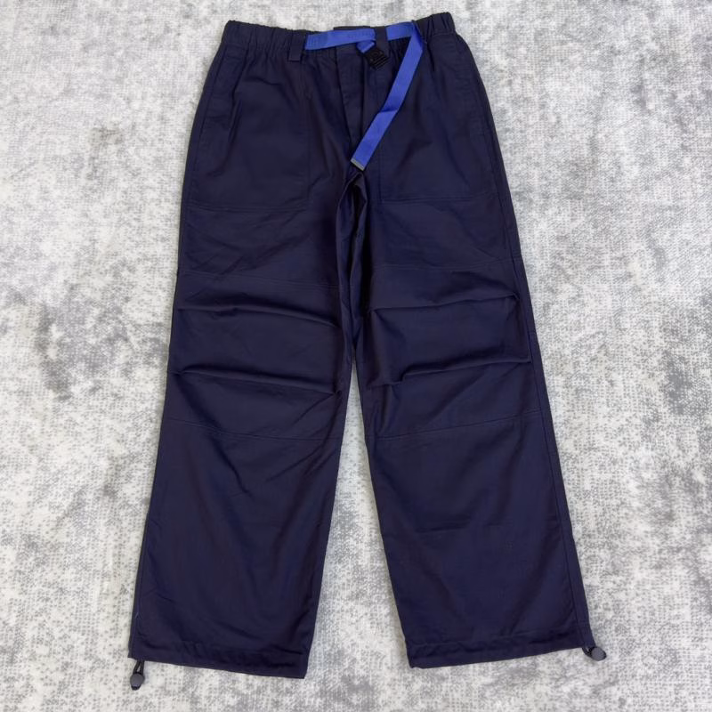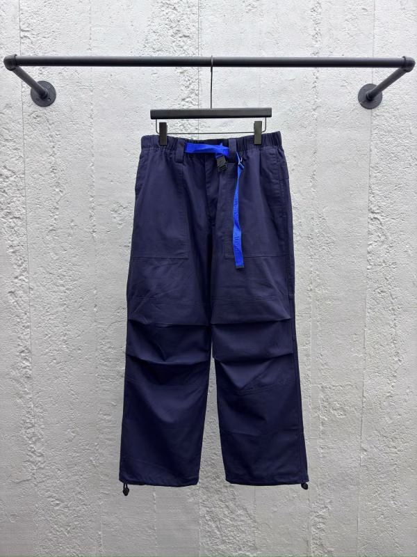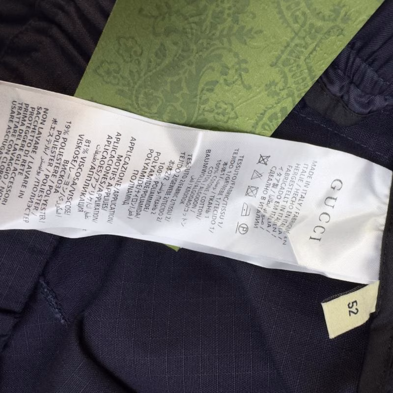 This GUCCI lock buckle cargo pants are made of custom cotton fabric, which is comfortable and durable in texture, with a strong cargo style, combining fashion and practicality. Both sides of the waist are equipped with metal hardware logo-engraved buckles, which can not only adjust the size of the waist but also highlight the brand’s unique sense of design. There is also a blue webbing on the waist, printed with the logo, adding a touch of personality and fashion.