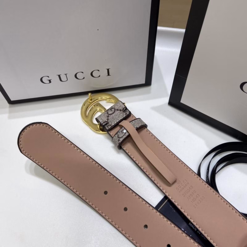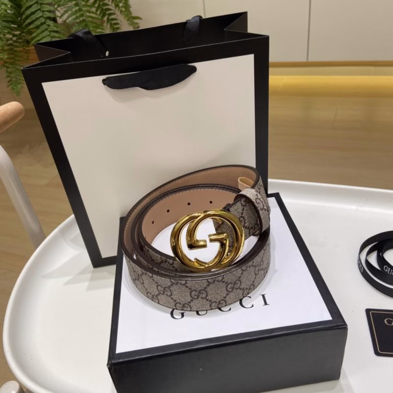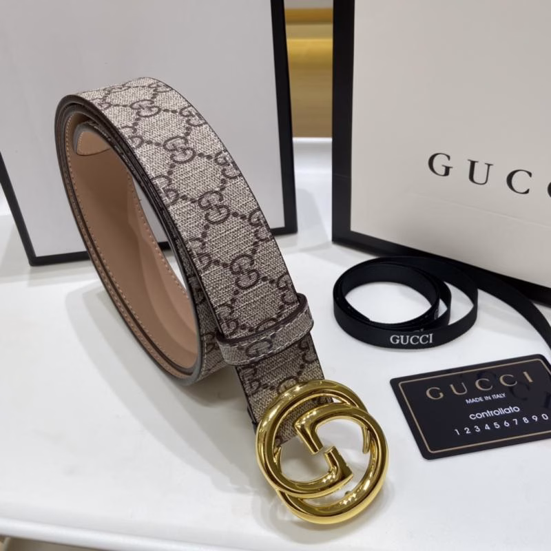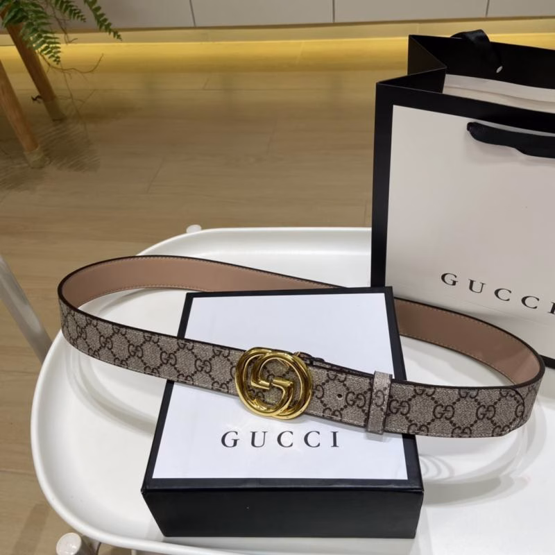 Gold Round-head Double G Steel Buckle: Adopting Gucci’s iconic double G logo, the steel buckle is designed to be sturdy and durable. The gold color makes the belt more luxurious.