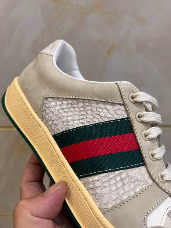 Gucci same-style men's skate shoes with crocodile belly Himalayan white leather